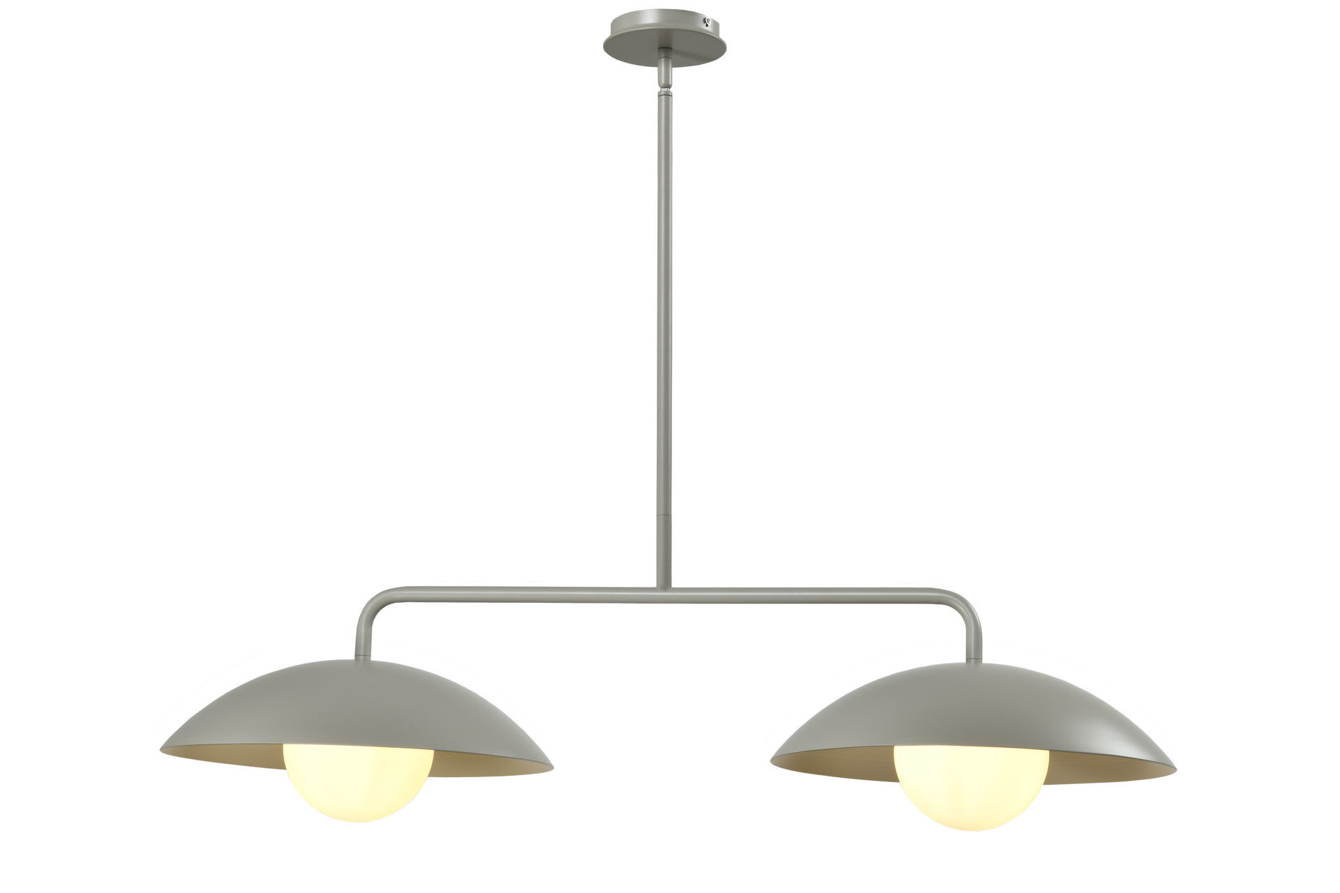 Alliant originalité et élégance, ce luminaire se distingue par sa silhouette audacieuse composée de deux abat-jours légèrement incurvés qui mettent en valeur les globes givrés, lesquels diffusent une lumière douce et enveloppante. Sa forme sculpturale en fait une pièce décorative idéale pour une salle à manger, un ilôt, ou même un bureau, apportant une touche contemporaine et raffinée à tout espace.