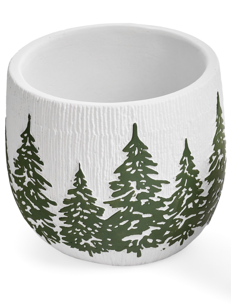 Ajoutez une touche hivernale et naturelle à votre décor avec ce petit cache-pot en ciment orné de magnifiques sapins verts. Sa texture blanche effet bois et son motif de conifères apportent un charme chaleureux, parfait pour la saison des Fêtes ou un décor rustique et nordique. Mesurant 4.5 x 4 pouces, il est idéal pour accueillir une petite plante, un arrangement de verdure artificielle ou servir comme décoration autonome sur une table, une étagère ou un comptoir.
