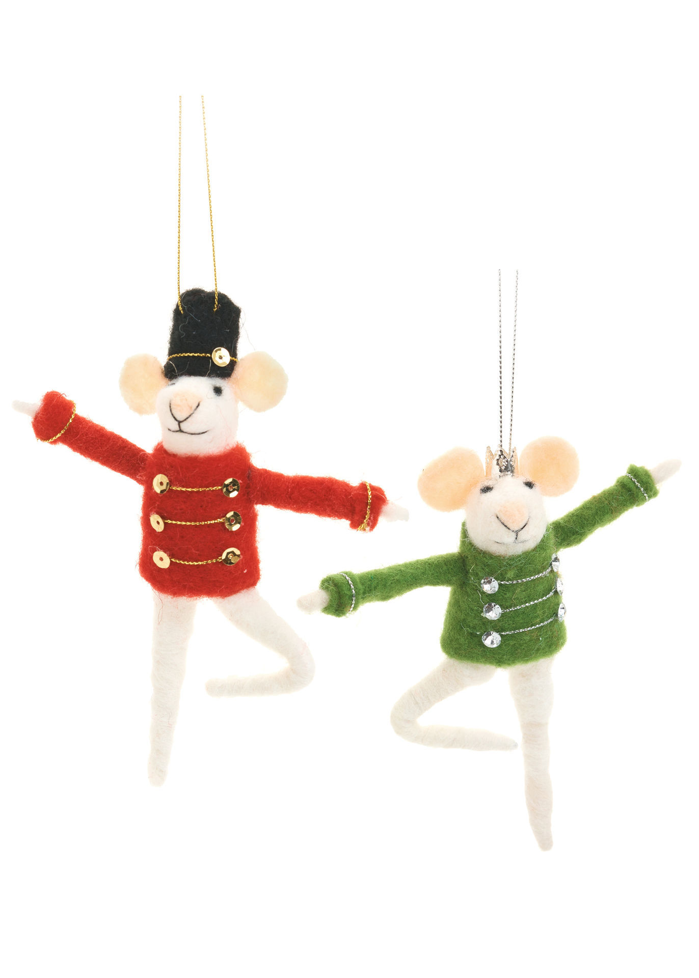 Apportez une touche amusante et festive à votre décor des Fêtes avec cet adorable ensemble de 2 souris soldats. Confectionnées en mélange laine/polyester, ces petites souris prennent la pose en uniforme, l’une en rouge avec un chapeau noir façon casse-noisette, l’autre en vert avec une petite couronne scintillante. Leurs vestons décorés de boutons dorés et argentés ajoutent un charme irrésistible. Mesurant 5 x 7 pouces, ces ornements légers se suspendent facilement au sapin, sur une guirlande ou dans tout décor thématique de Noël.