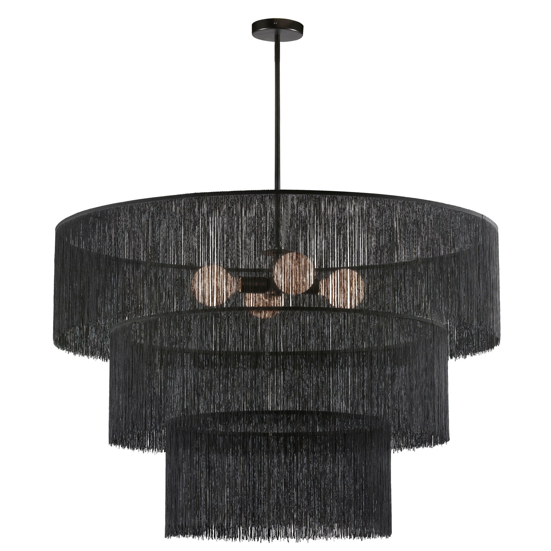 Ce luminaire suspendu se distingue par son design spectaculaire à franges superposées, apportant une touche à la fois chic, artistique et contemporaine à votre décor. Sa structure à deux niveaux crée un jeu de volumes raffiné, tandis que les franges délicates filtrent la lumière pour offrir une ambiance chaleureuse et enveloppante.