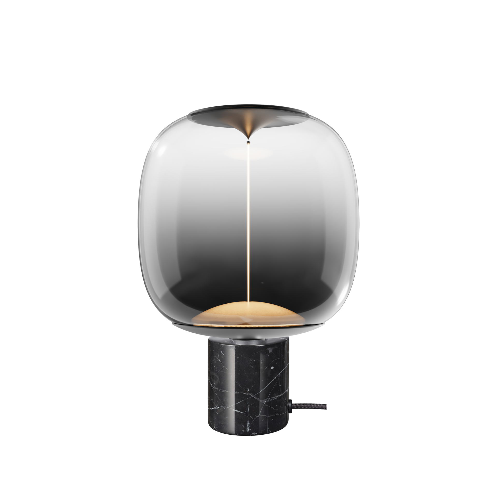 Élevez votre décor avec cette lampe au design unique alliant modernité et sophistication. Son ampoule en polycarbonate fumé crée une ambiance douce, chaleureuse et enveloppante, laissant apparaître une tige lumineuse raffinée qui diffuse la lumière de façon subtile et apaisante. La base en marbre noir ajoute une touche de luxe intemporel. Chaque pièce est naturellement unique grâce aux veinures distinctives du marbre, faisant de cette lampe un véritable objet décoratif autant qu’une source d’éclairage.