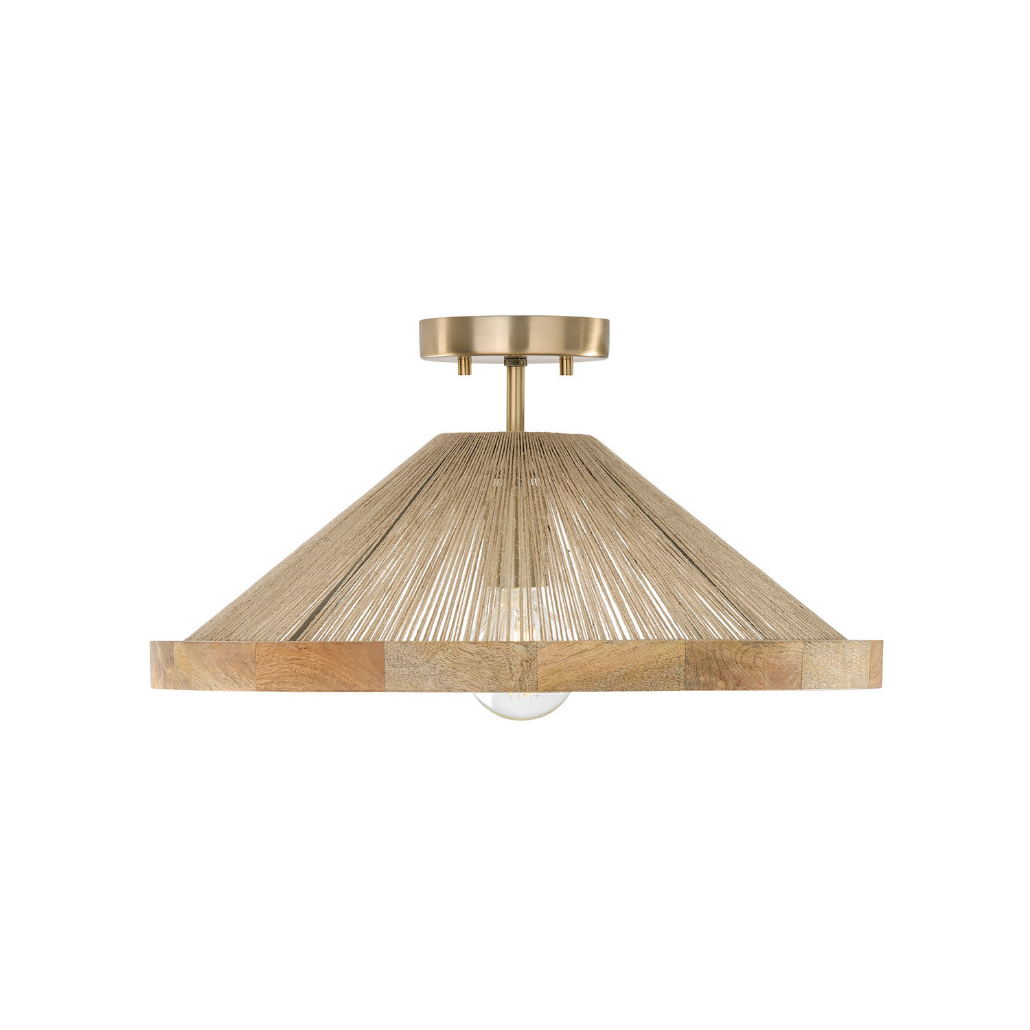 Terreux et élégant avec une silhouette conique moderne, le luminaire suspendu Maya Open Dual Mount utilise des matériaux naturels pour améliorer n'importe quel espace. La combinaison de bois de manguier teinté clair et de corde de jute naturelle enveloppée à la main crée un design haut de gamme avec un attrait artisanal, tandis que la finition en laiton mat ajoute une touche de brillance. Peut être suspendu ou semi-plafonnier.